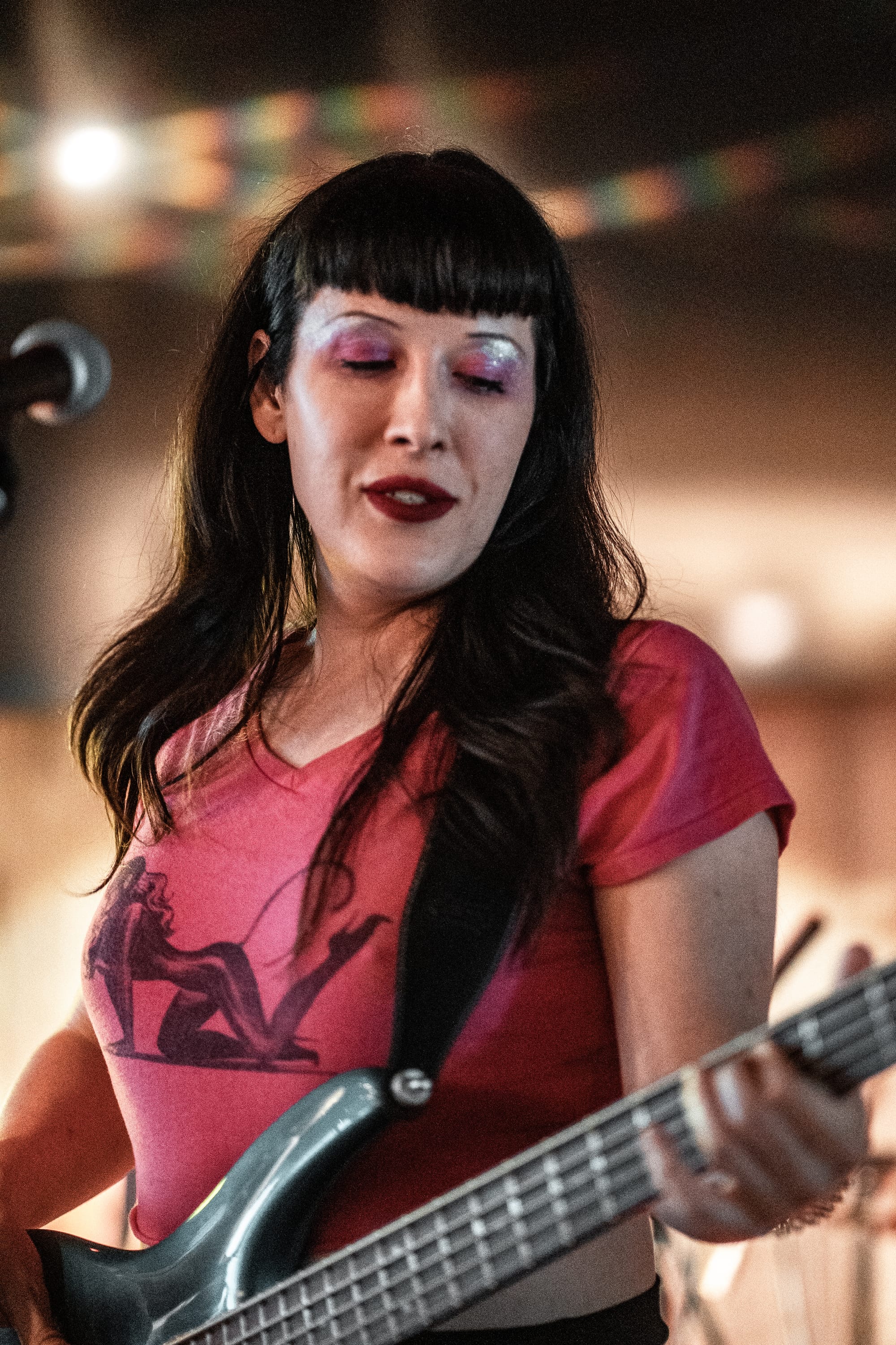 The setlist was relatively short, with only ten songs which included “Daddy’s Getting Married,” “ Moment of Weakness,” and “I Love Myself Today.” Halfway through her set, after performing her song “Chotee,” Bif Naked wanted to give her band a tremendous shout-out. Her bassist/ manager, Peter Karoll, controlled his bass with such power, even impressing the crowd while strumming out notes with only one hand and, in the other, holding a mic stand which he ripped up and down the neck of the bass. Chicko Misomali kept the beat going with each song, bashing on his drums. At the same time, fellow guitarist Doug Fury shredded chords on his guitar, even having a pink bra thrown his way while playing the intro to Metallica’s “Master of Puppets” during his shout-out from Bif Naked.