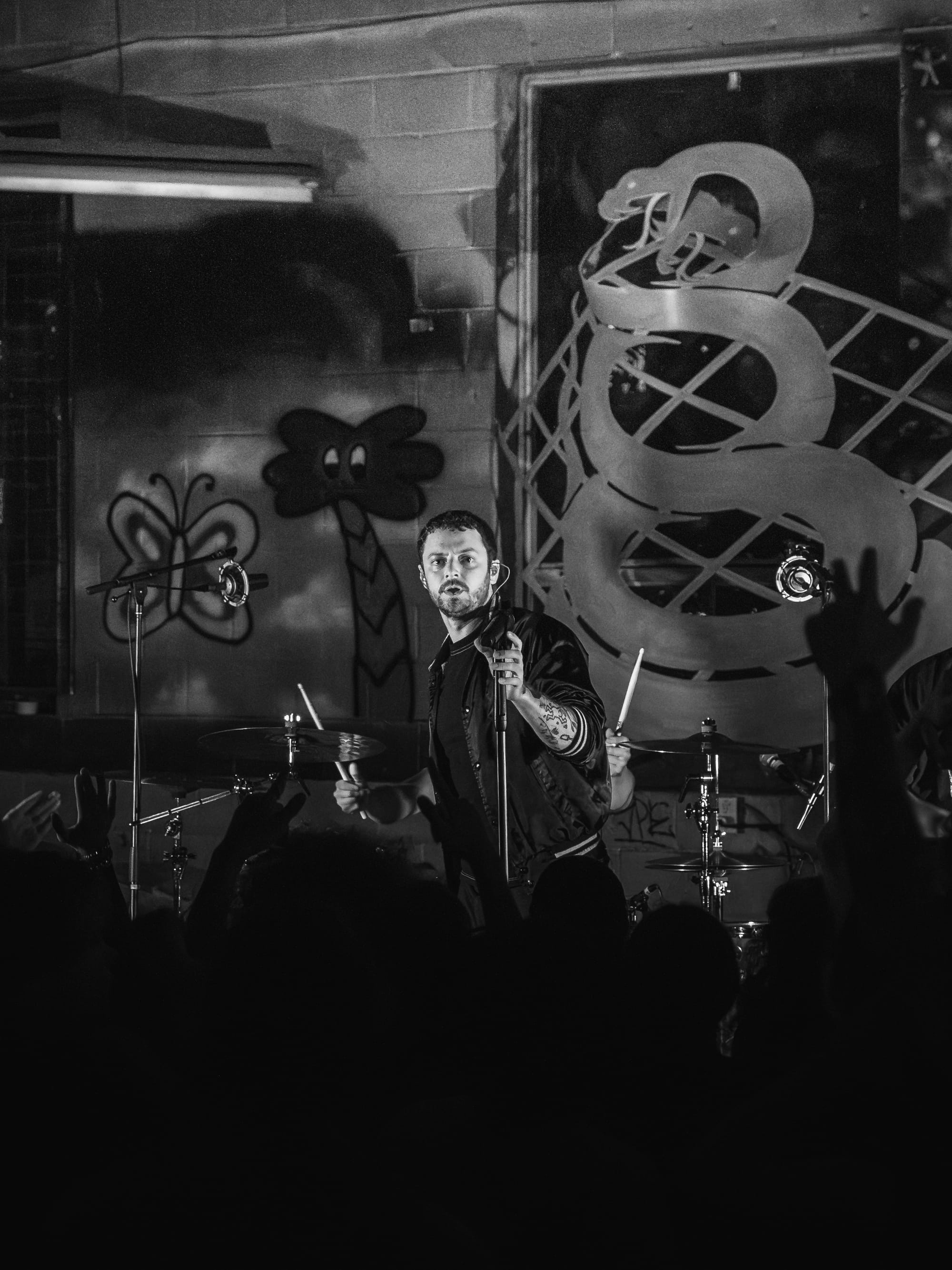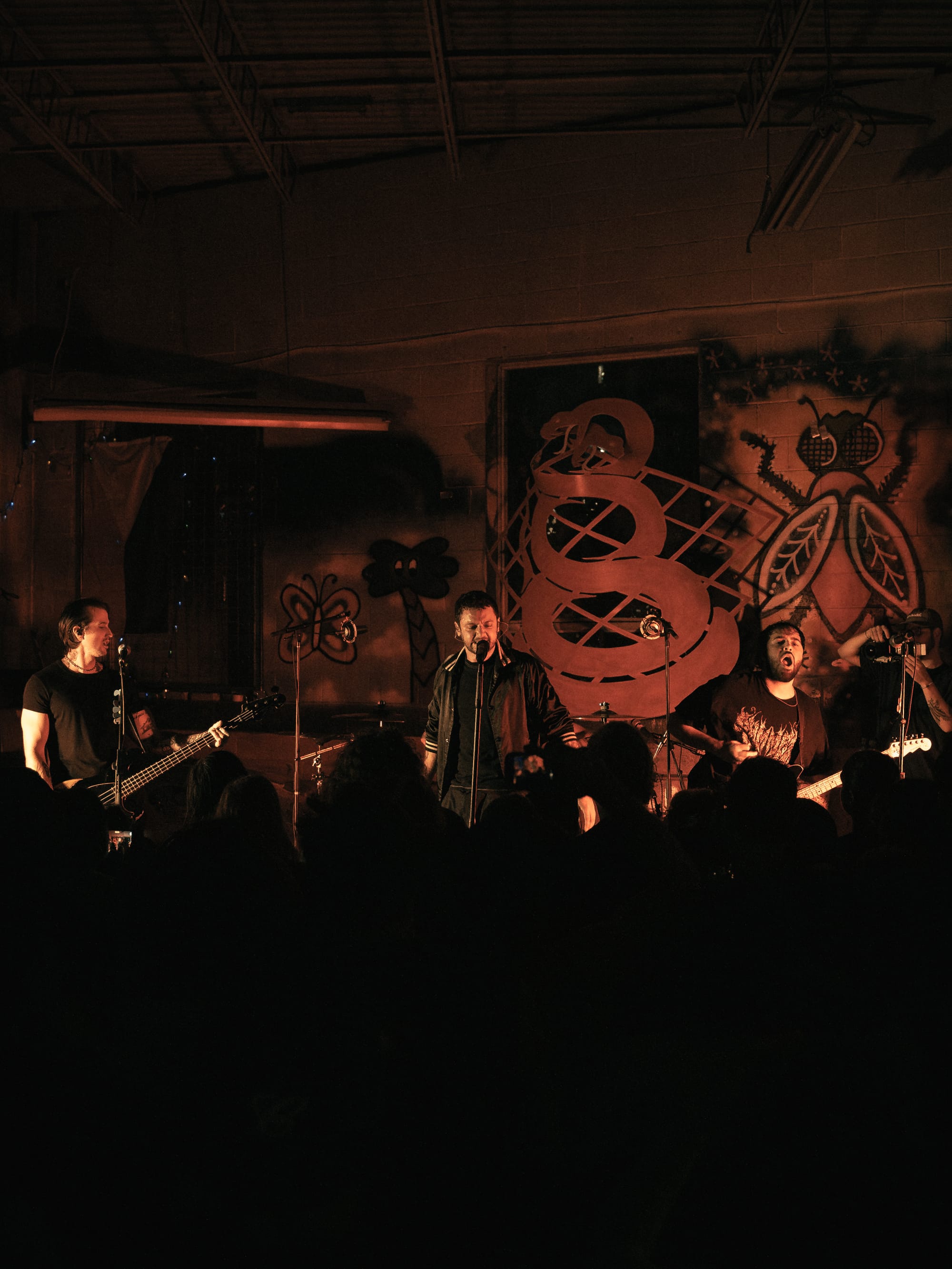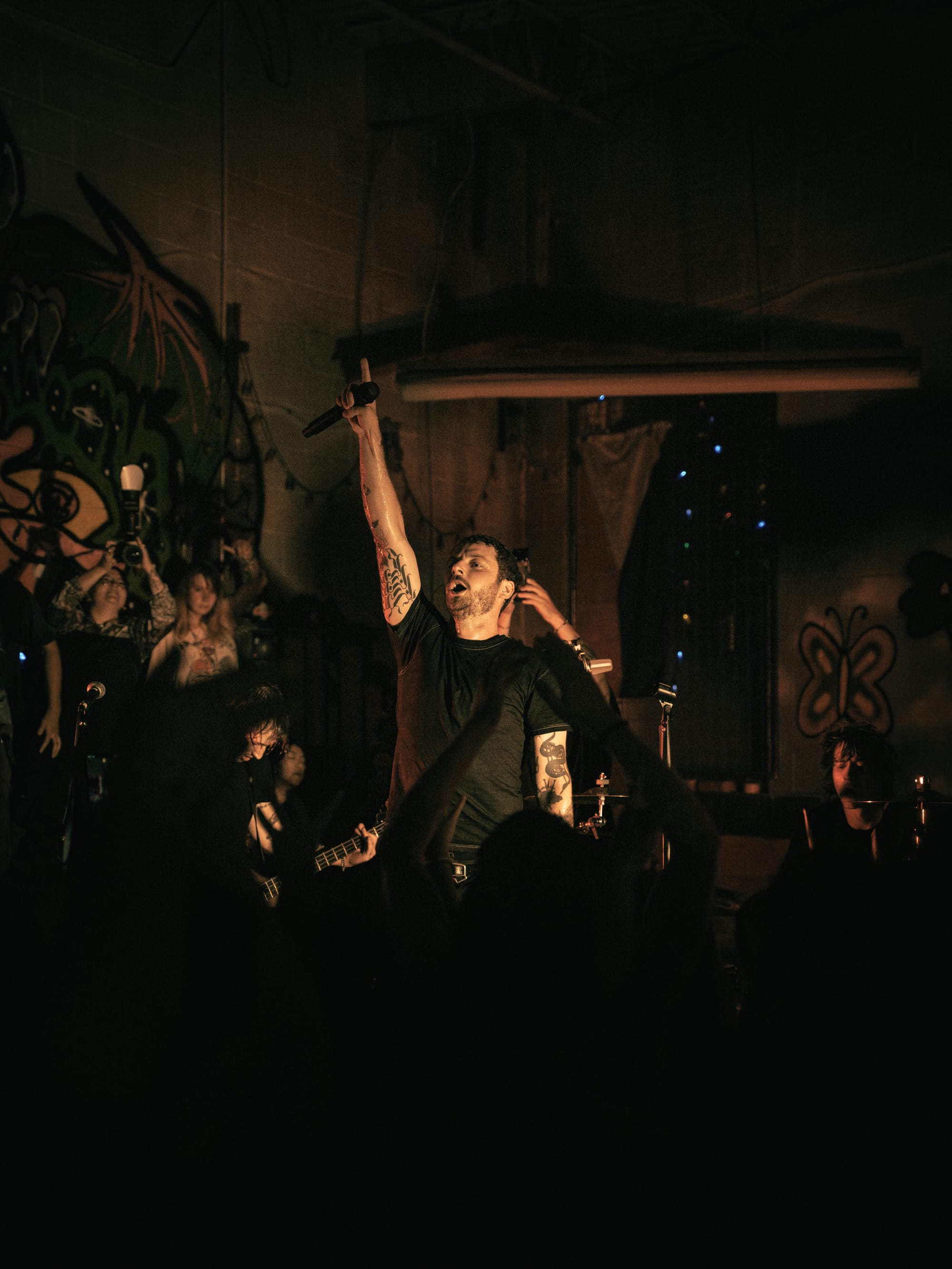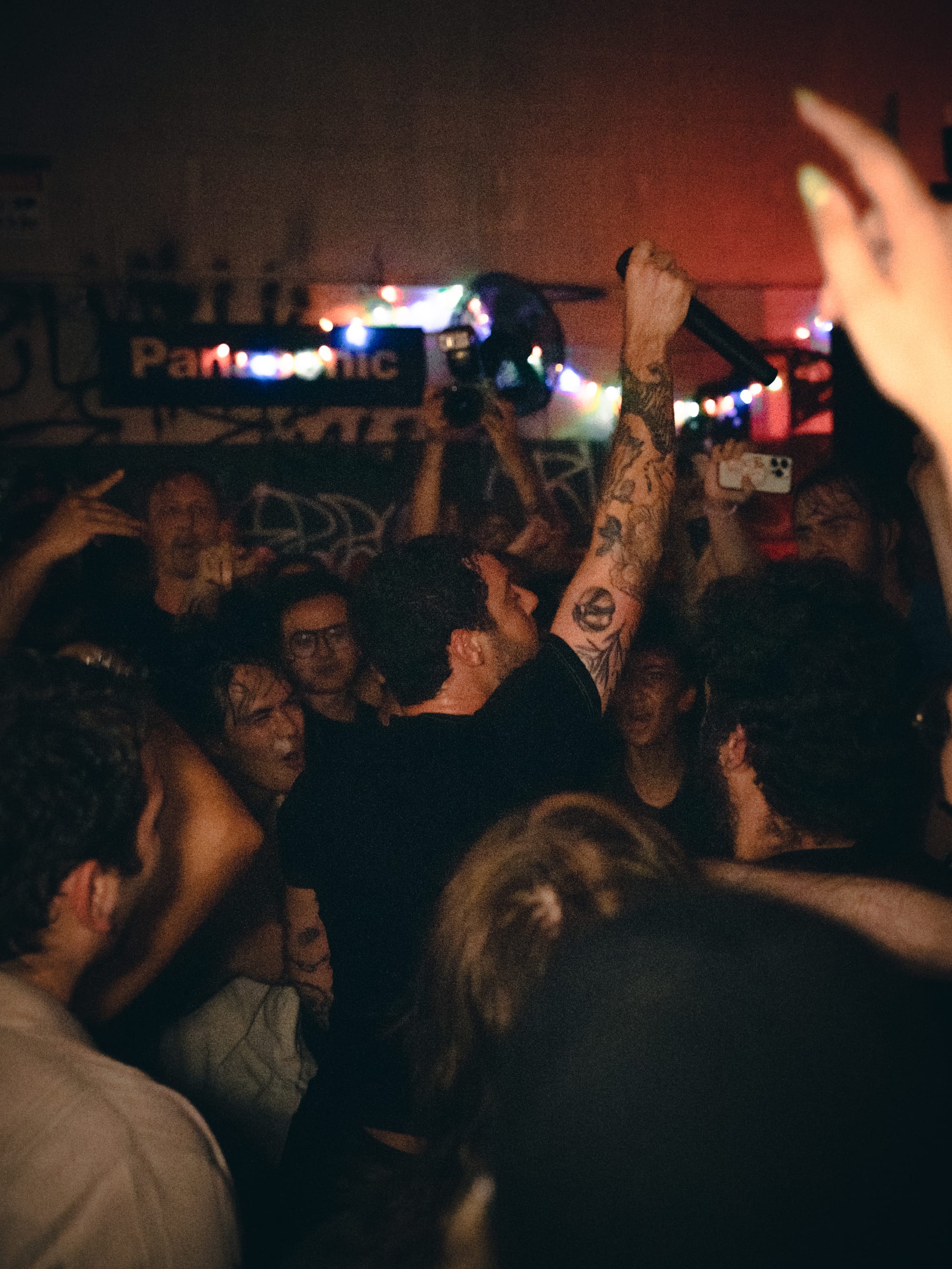 Expo Vintage, a thrift-style shop with graffiti-splashed walls and a skateboard half-pipe as the makeshift stage, set the tone immediately: gritty, intimate, and unconventional with hundreds of people packed inside. The front rows pressed so close to the band you could reach out and touch them, while those further back found breathing room near the drink and merch area.