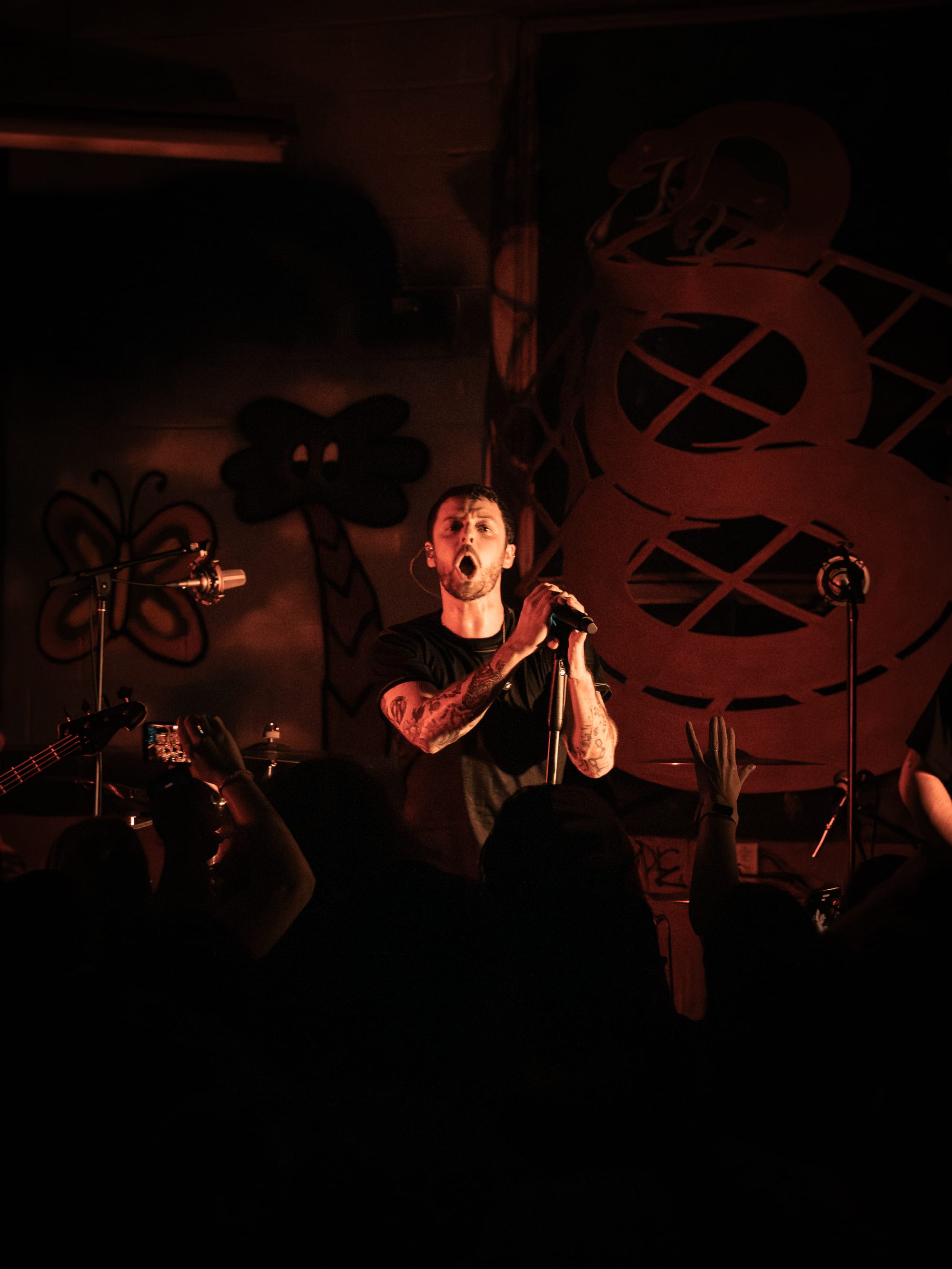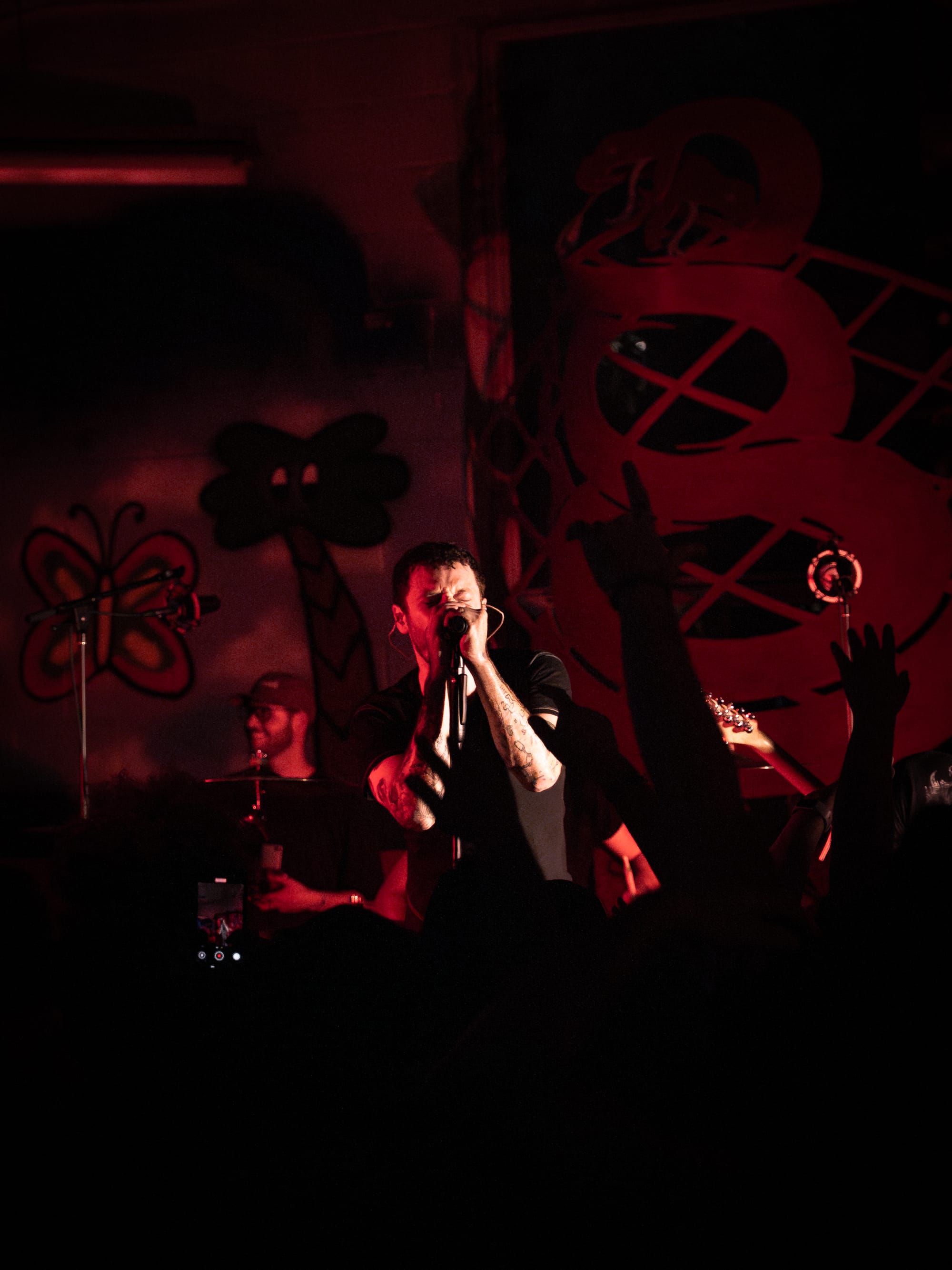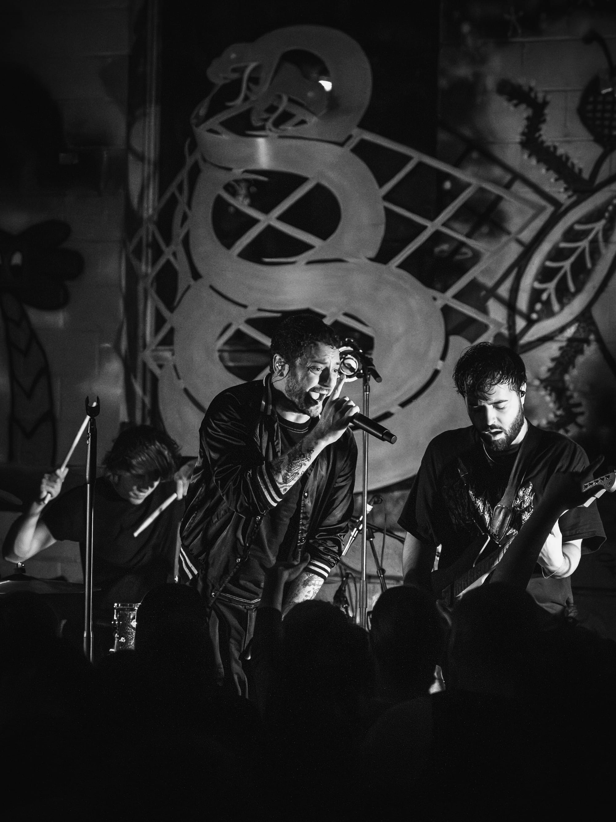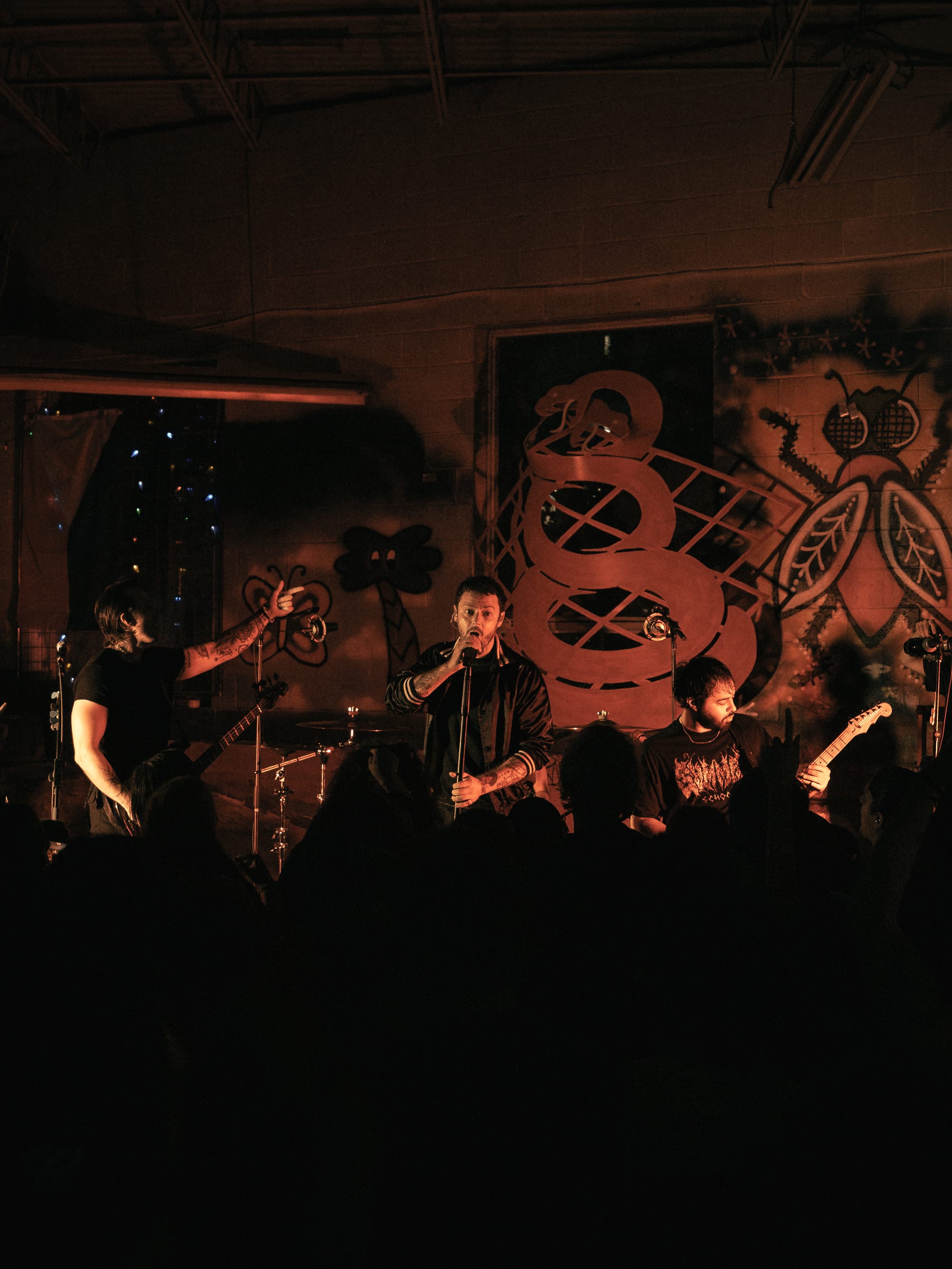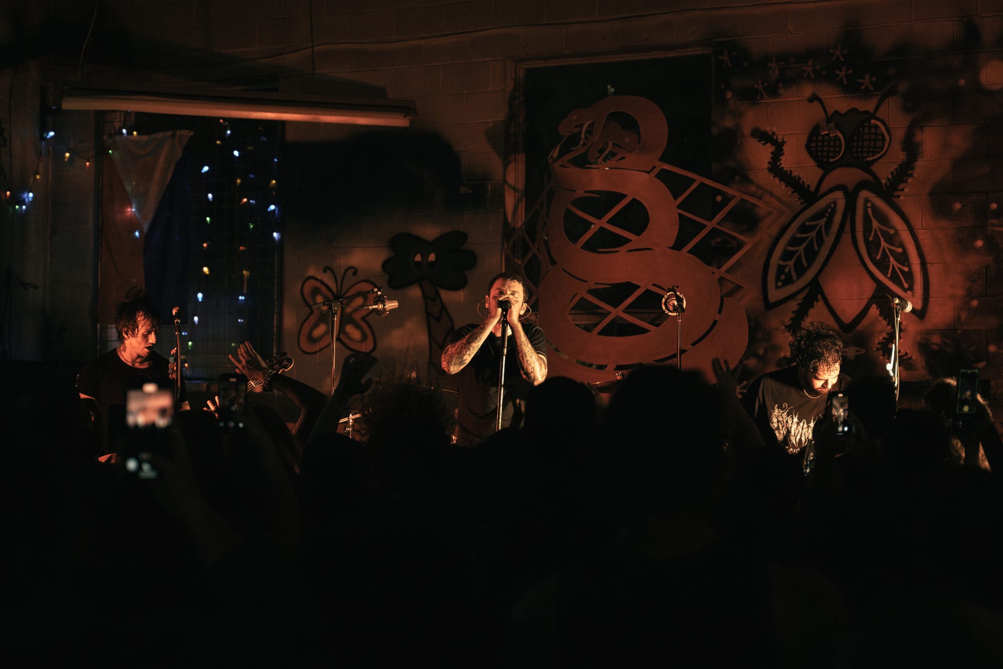 Expo Vintage, a thrift-style shop with graffiti-splashed walls and a skateboard half-pipe as the makeshift stage, set the tone immediately: gritty, intimate, and unconventional with hundreds of people packed inside. The front rows pressed so close to the band you could reach out and touch them, while those further back found breathing room near the drink and merch area.