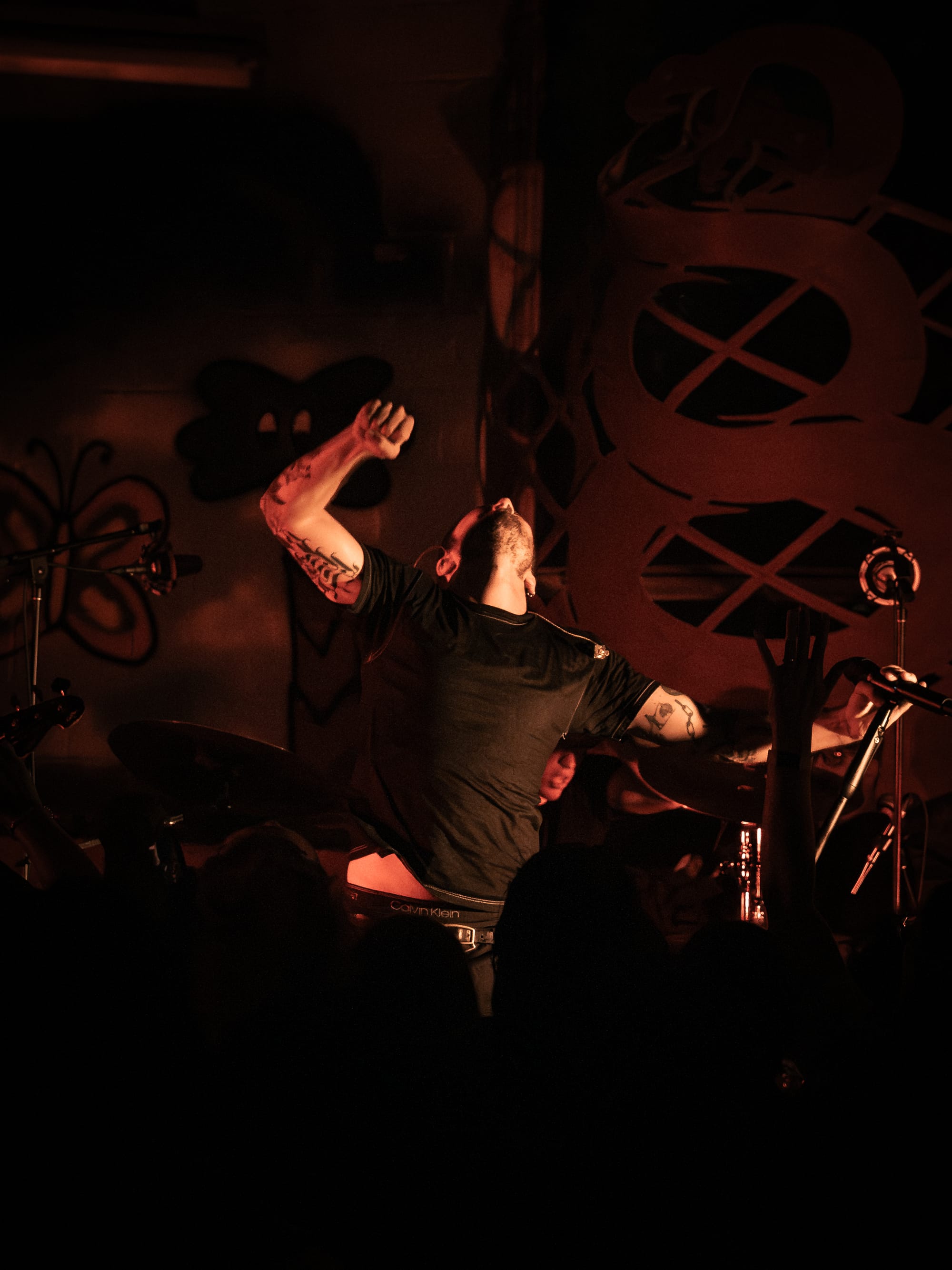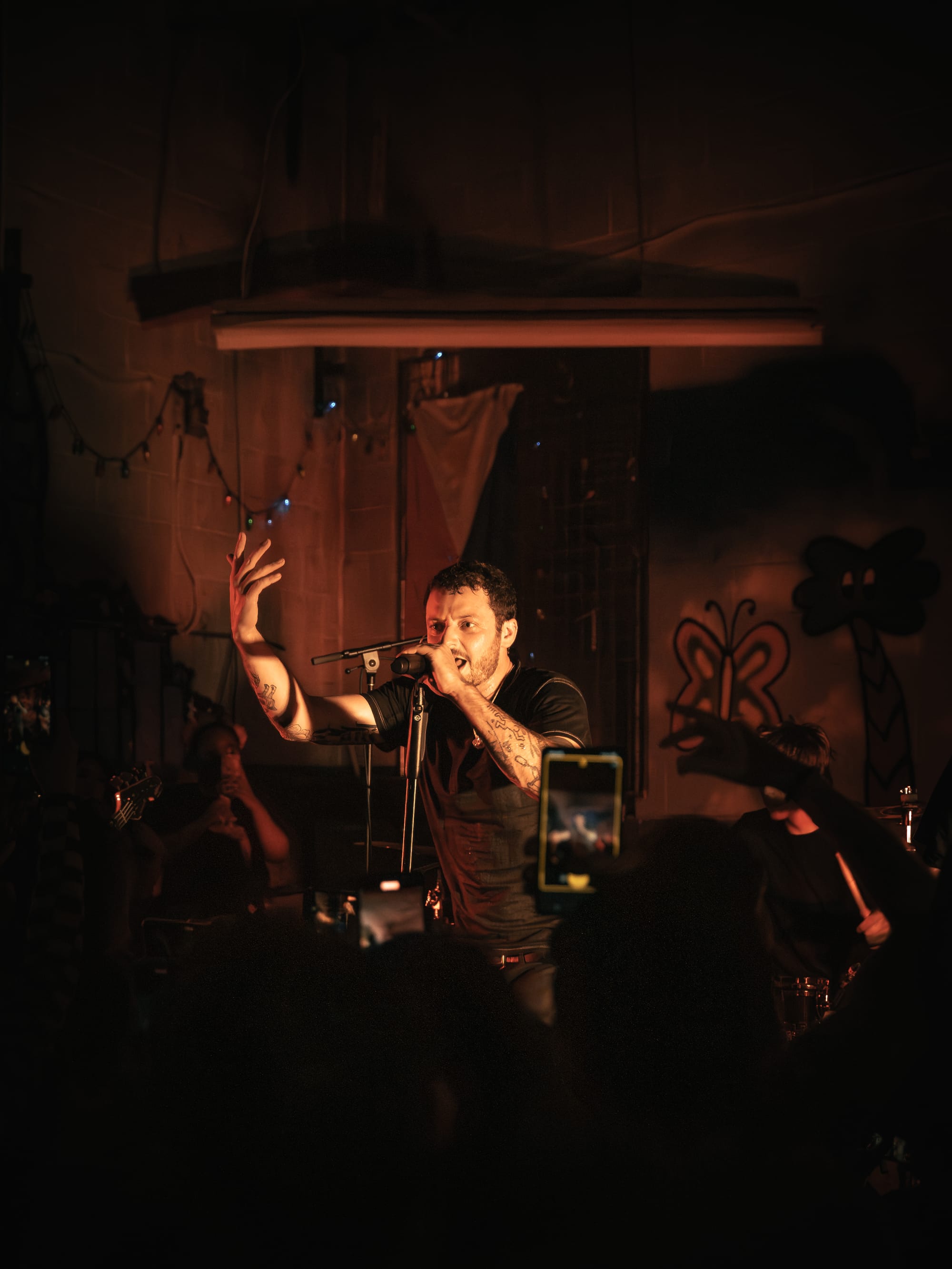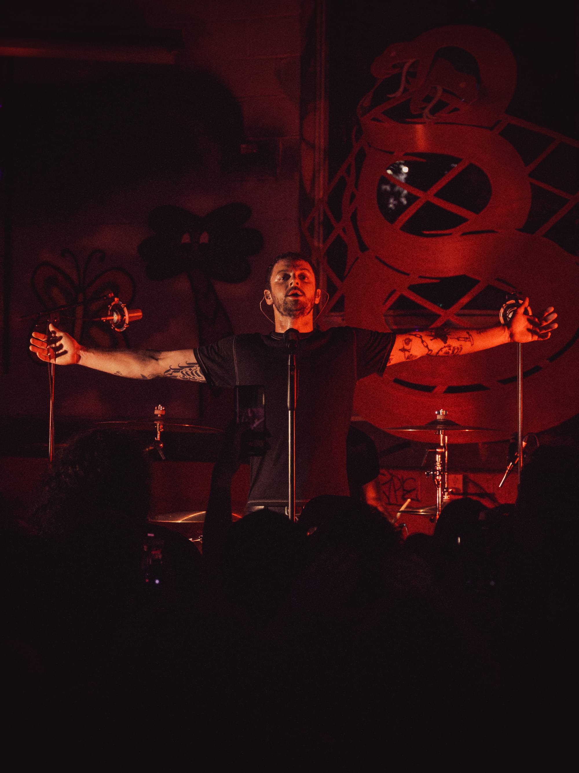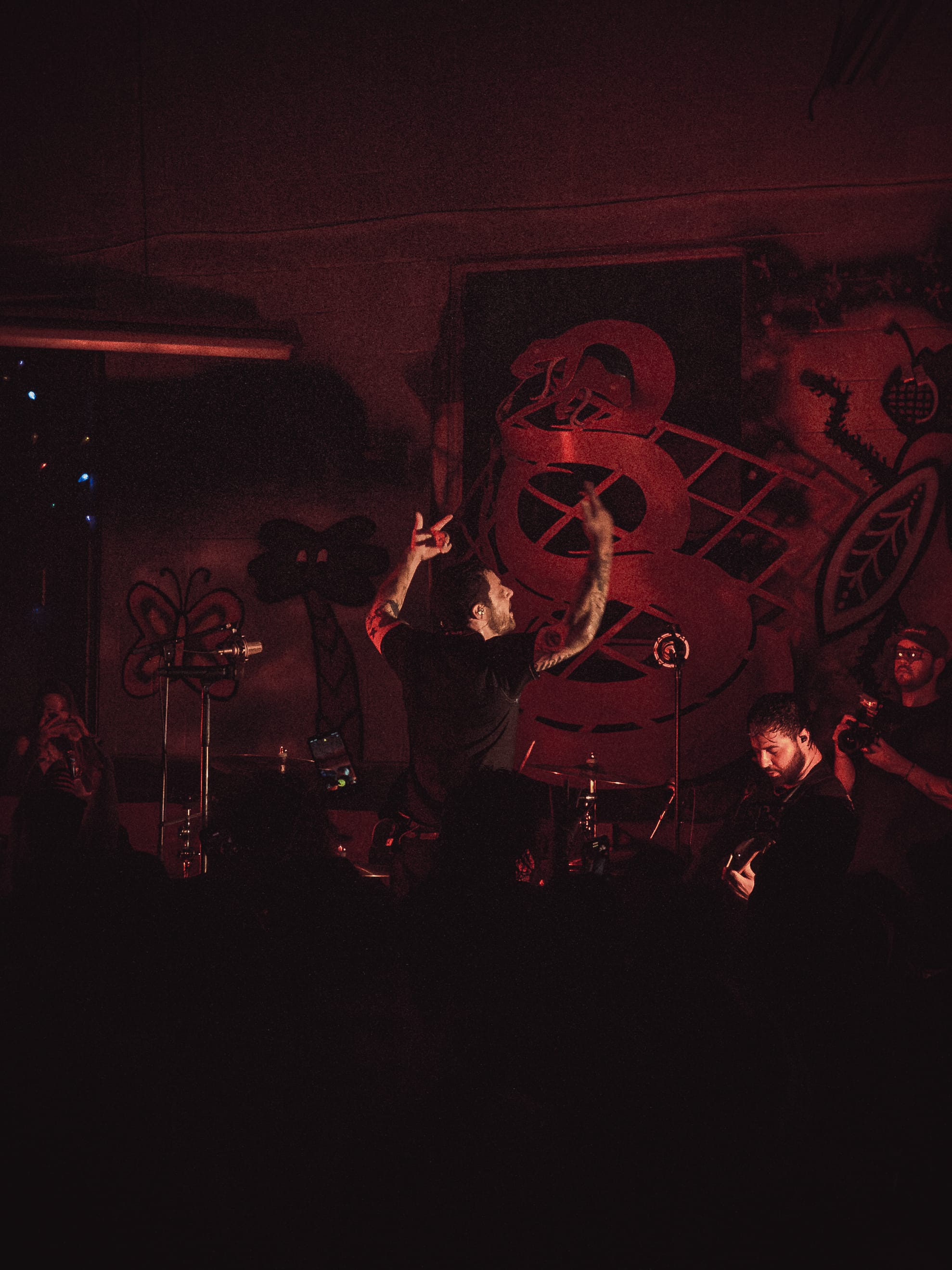 Expo Vintage, a thrift-style shop with graffiti-splashed walls and a skateboard half-pipe as the makeshift stage, set the tone immediately: gritty, intimate, and unconventional with hundreds of people packed inside. The front rows pressed so close to the band you could reach out and touch them, while those further back found breathing room near the drink and merch area.