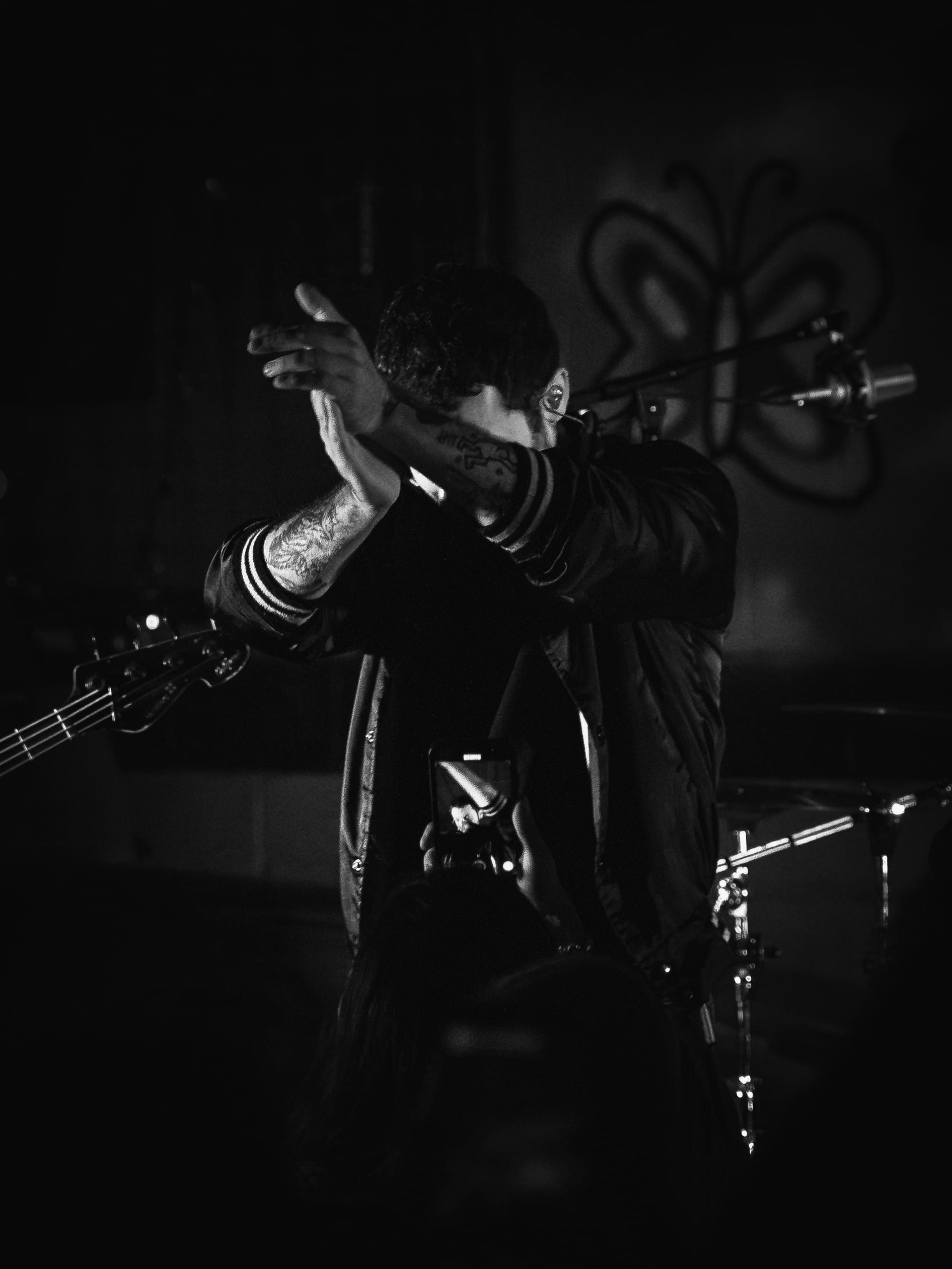 Chants of “grandson!” echoed before the first note, and when the set kicked off around 9 p.m., the room erupted. He opened with “Bury You” and “Oh No!!!,” instantly igniting the crowd before rolling into more fan favorites. Heat rose fast, sweat dripping as mosh pits broke out multiple times. At one point, members of the band even made their way into the heart of the crowd, instruments in hand, jamming shoulder-to-shoulder with fans. Grandson wasted no time showcasing Inertia, released just six days earlier. “Brain Rot,” “Self-Immolation,” and the live debut of “Autonomous Delivery Robots” hit especially hard, their fury amplified by the intimate setting. Longtime fans weren’t forgotten, older material blended seamlessly into the set. Near the end, he handed out water bottles to the crowd, only to turn them into props for the explosive finale: “Blood // Water.” As the chorus hit, bottles burst open, spraying the room in a chaotic, refreshing release.