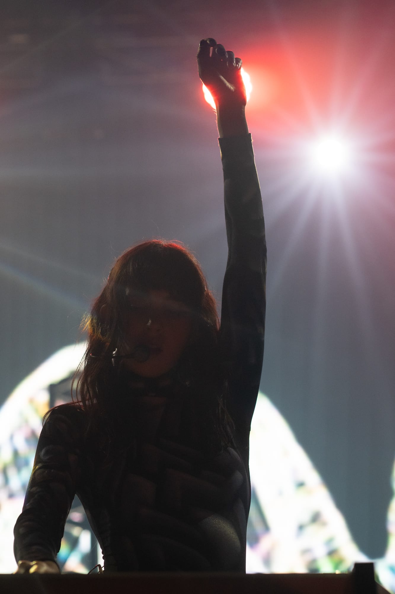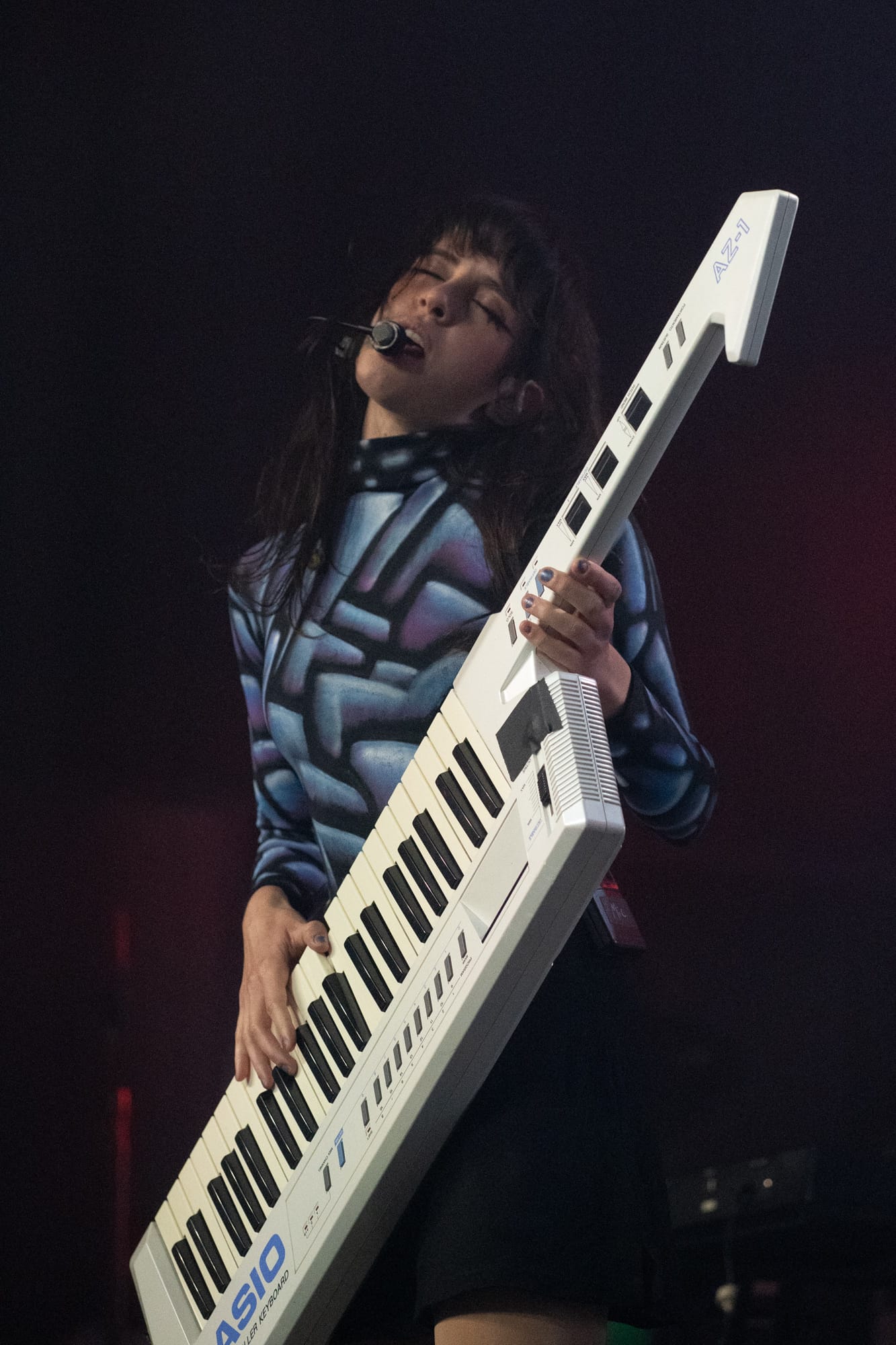 Midway through the set, Mica picked up her white keytar, dancing her way across the stage, playing out chords and matching melodies with Matthew on his guitar. One thing I always love about performances is when an artist brings out a keytar. From my personal experience, this isn’t something I have seen a lot of artists use on stage. As the duo continued, there was no lull or pause in their work; they continued wowing the crowd and getting them grooving to every beat. The pair closed their set out with their song “The Beginning.” The lyrics “Sit back, enjoy the show” echoed from Mica as Matthew played one last keyboard solo with an 80s-style synth, and with a bow, they thanked the crowd and exited the stage in preparation for Rina Sawayama.
