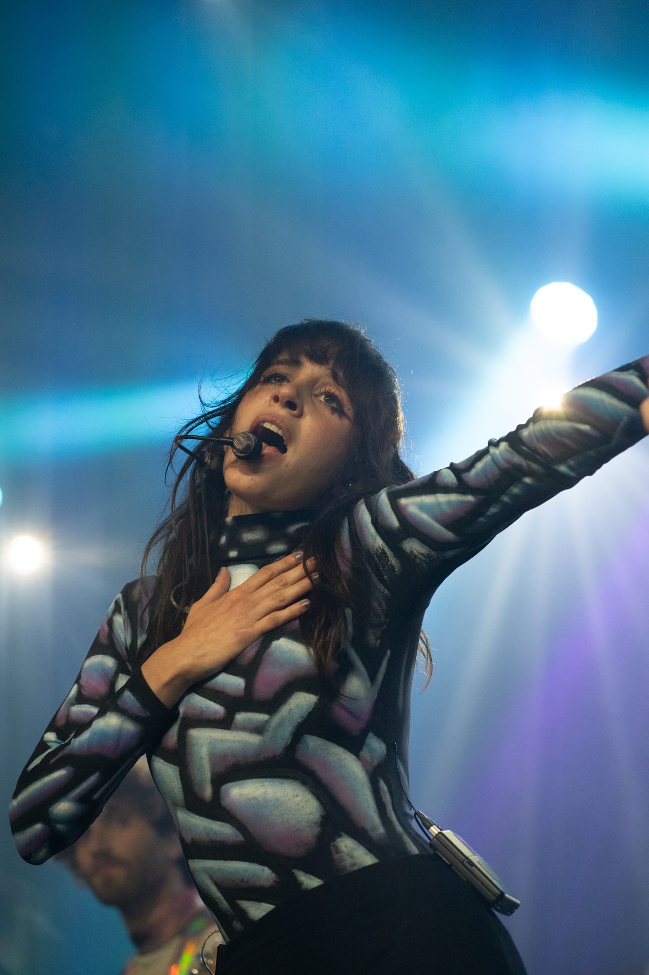 Half an hour after Disko Cowboy’s performance, Magdalena Bay came out on stage to perform their mellow electronic songs. Opening with their song “You Lose!” the duo wasted no time getting into the groove of their set. The duo’s vocalist, Mica Tenenbaum, swayed around, singing and dancing, gracefully moving to the drum of the opening song. As the set progressed, Magdalena Bay’s producer Matthew Lewin showed off his impeccable skills, shredding solos on his guitar and playing impressive fast-paced melodies on his keyboard. When Matthew started slapping notes on his bass, it left me in a state of amazement, as I don’t remember a bass being so powerful I could feel the soundwaves bouncing through my chest.